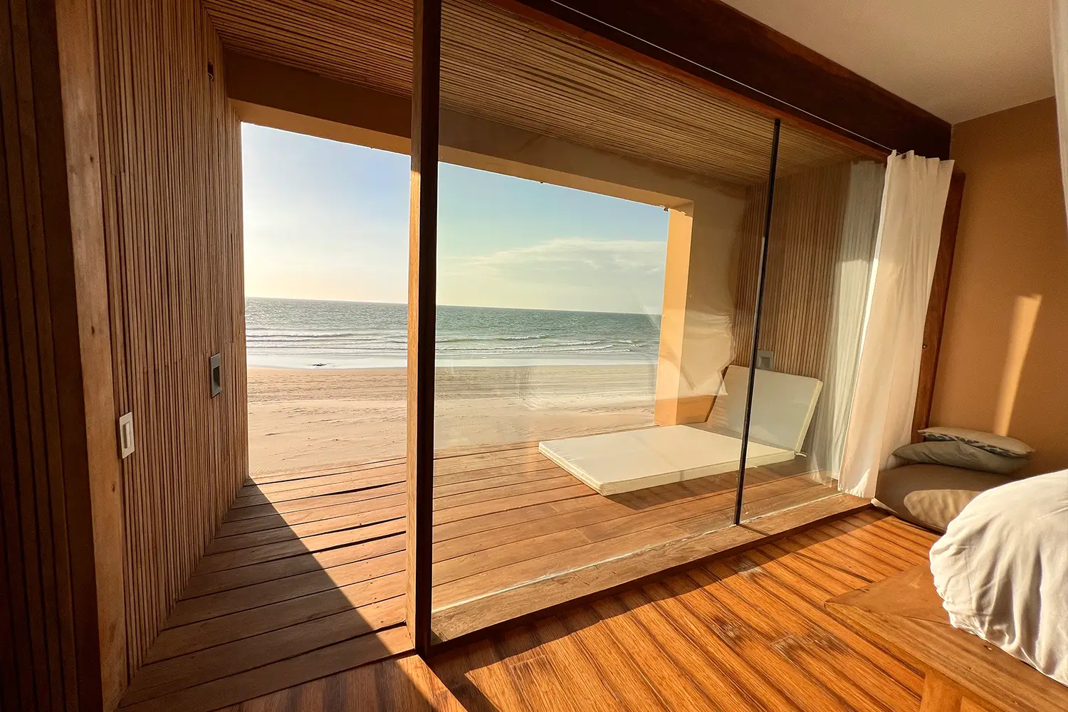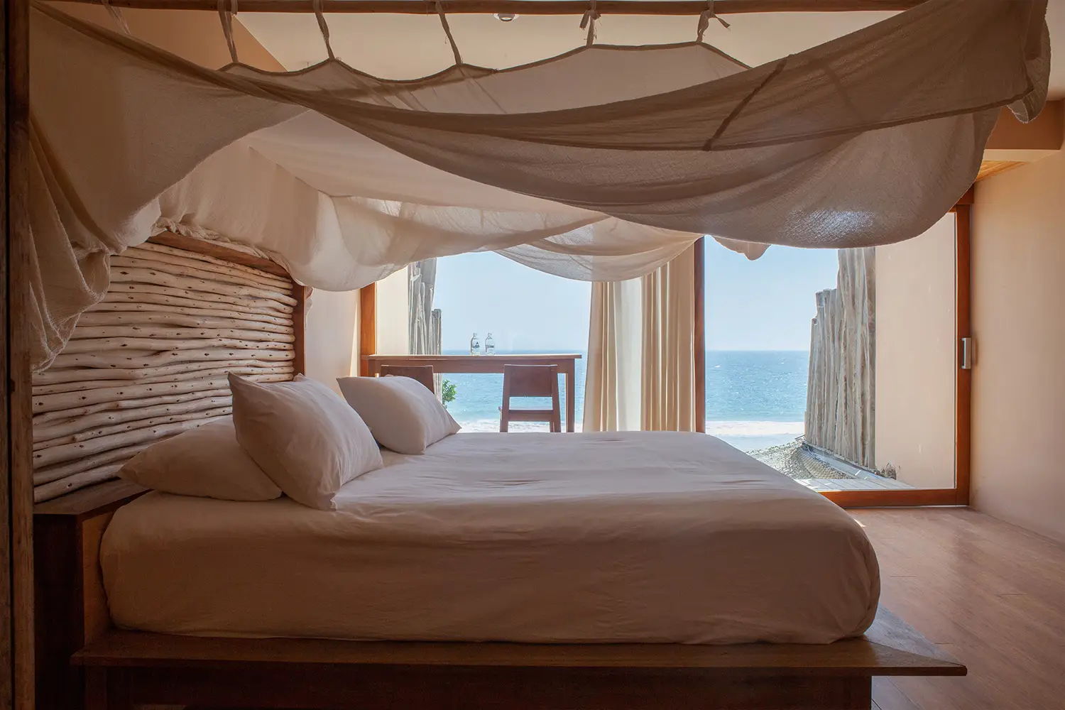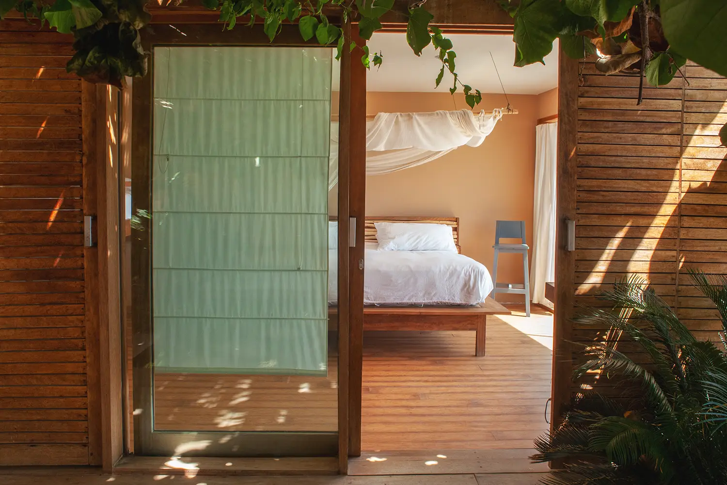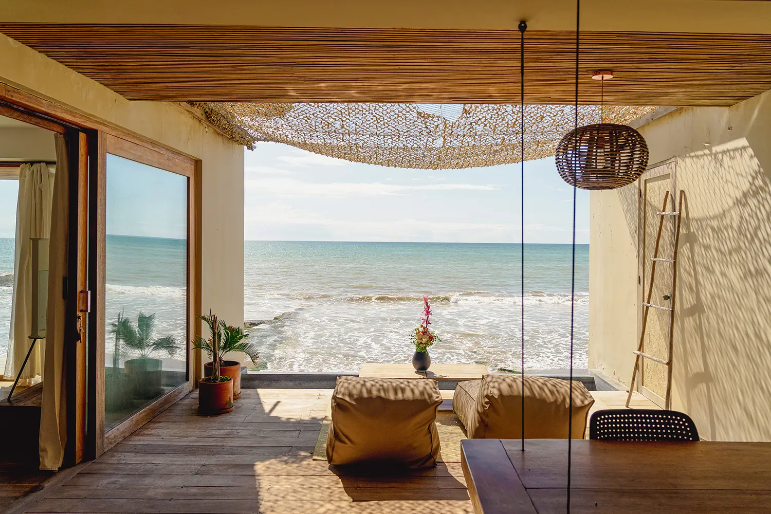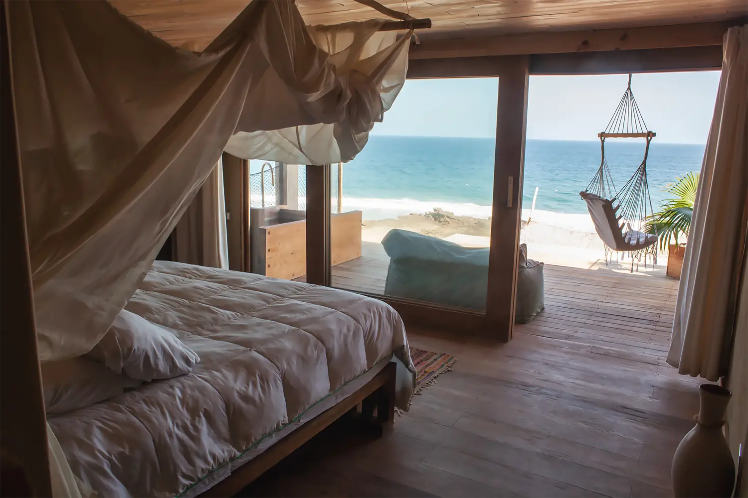 Una habitación íntima de 71m2 de hasta para cuatro personas, equipada con una cama kingsize y 2 camas estilo camarote. Ubicada en el 2do nivel. Cuenta con un clóset, baño privado y acceso a una terraza con vista a la playa.