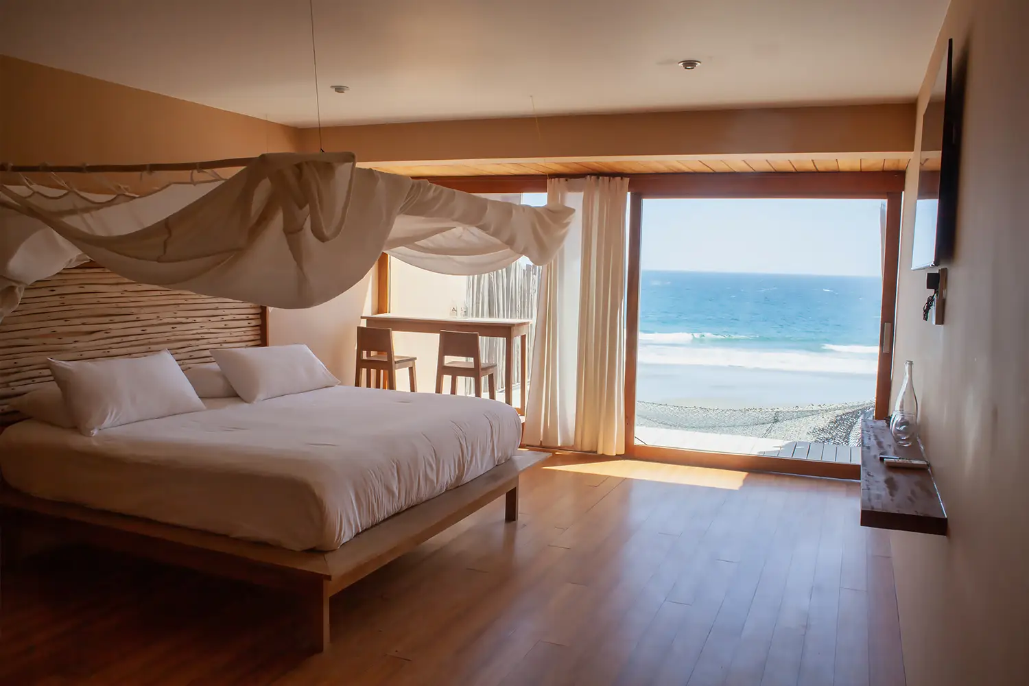 Una habitación para 3 personas de 33m2 equipada con una cama kingsize, ubicada en el primer nivel al ras del mar dando de esa manera de una vista incomparable a los mejores atardeceres de nuestro país, cuenta con un clóset, y baño privado.